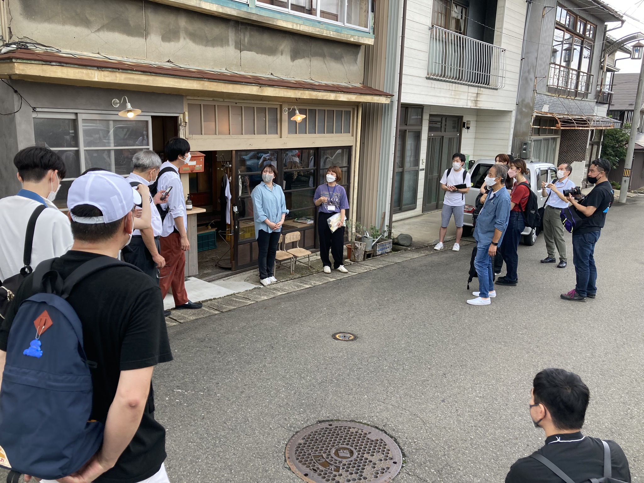 学生たちは講師の方々のお話を真剣に聞きながら、まちを見ています。